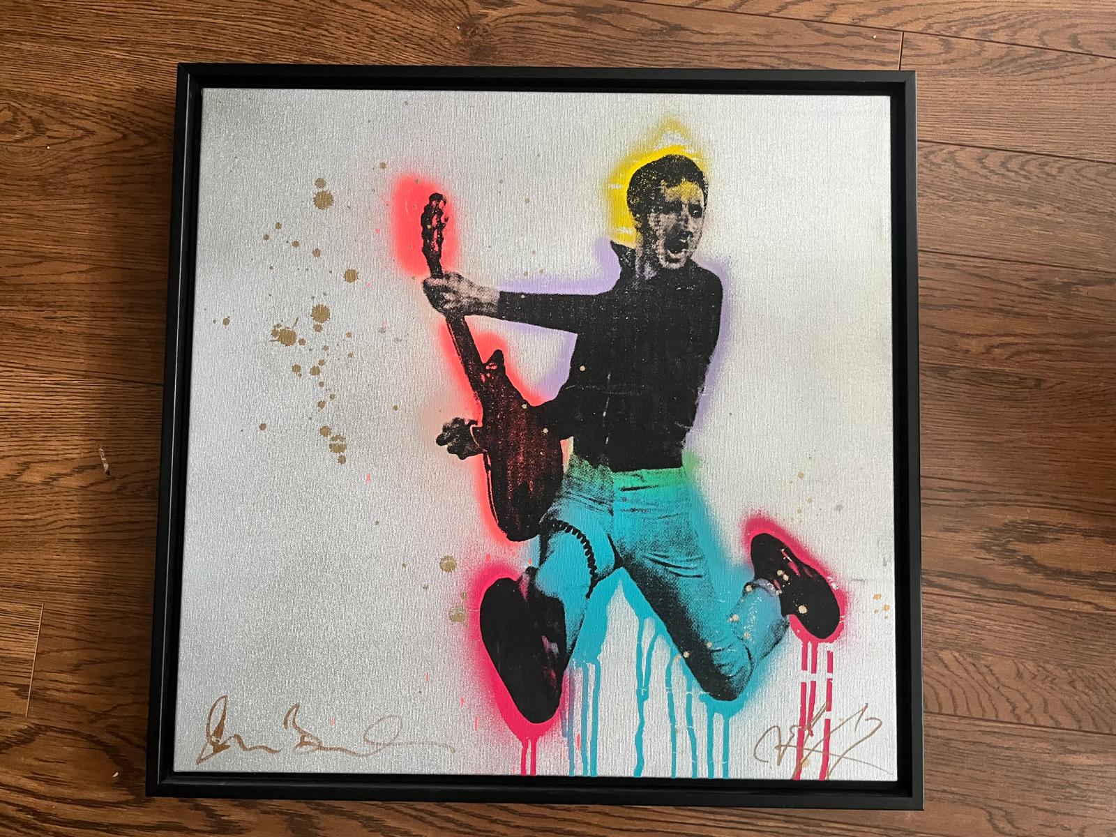 Original art canvas by Shane Bowden. Signed on the front in gold sharpie pen by Shane Bowden and Pete Townshend. Official Shane Bowden release. Signed at time of production by Bowden. Signed by Townshend at a later date.