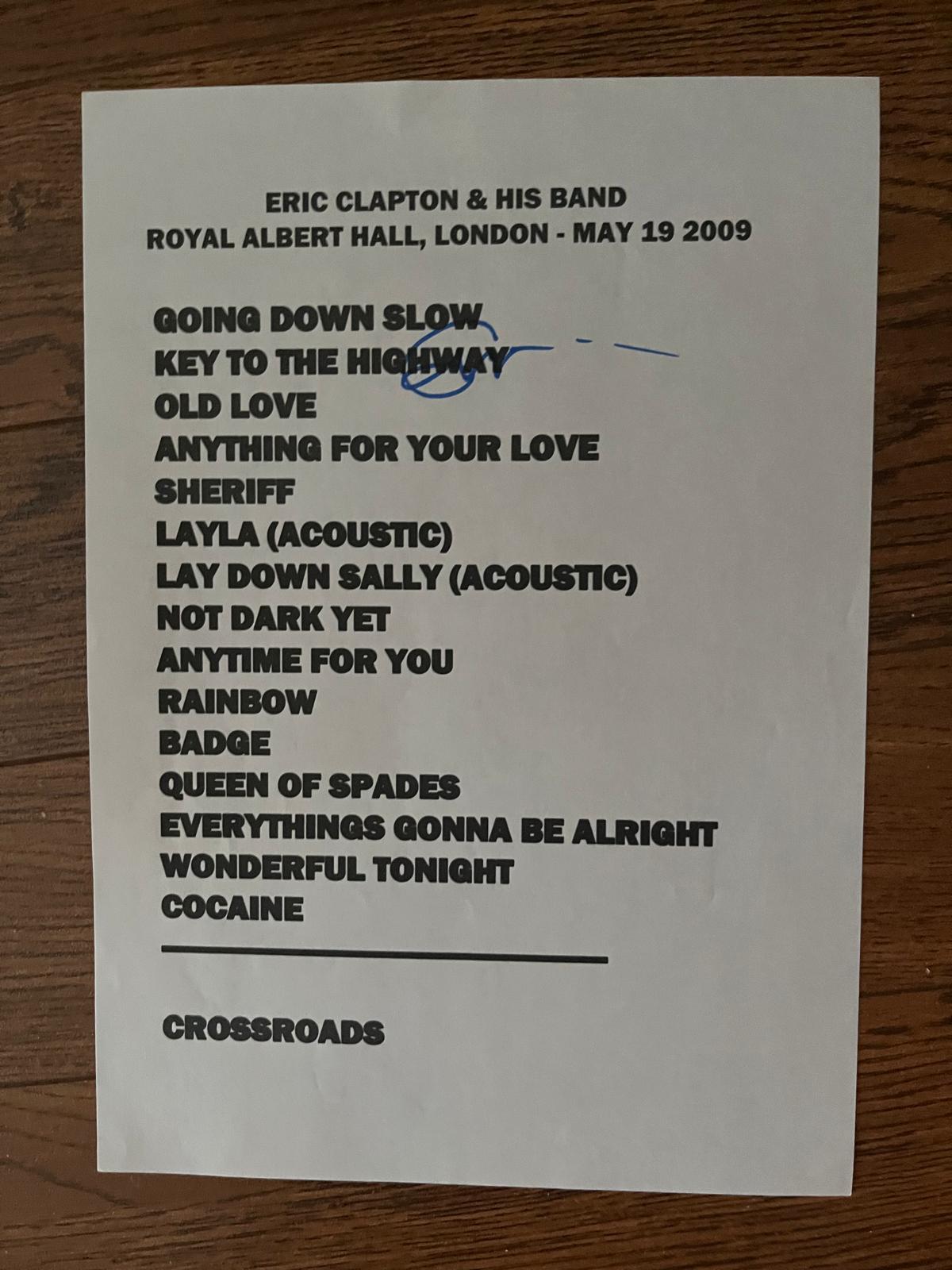 Eric Clapton Signed London 2009 Setlist