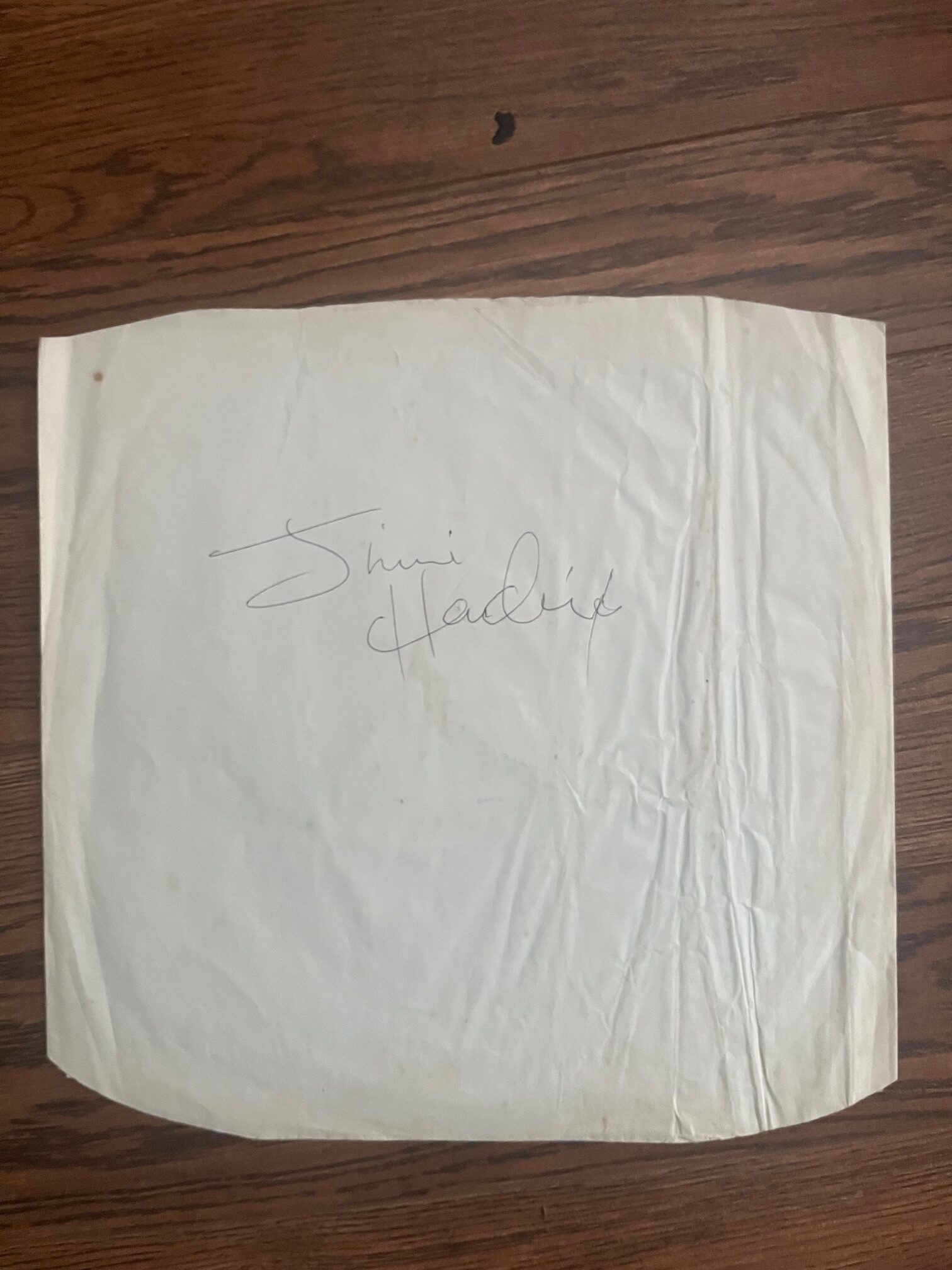 A vinyl record sleeve, autographed by Jimi Hendrix. Autograph has good shape, handwriting is okay and contrasts well with other known genuine examples.