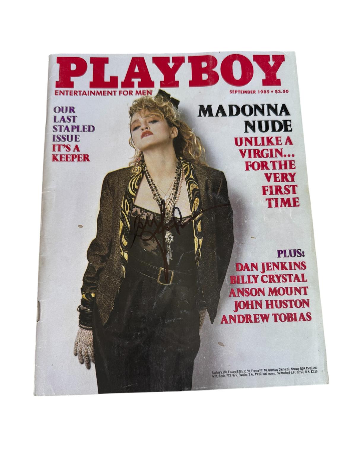 September 1985 Playboy Magazine, autographed in black sharpie pen by Madonna. Nice clean autograph from the 1990’s era. Signed “Love Madonna”