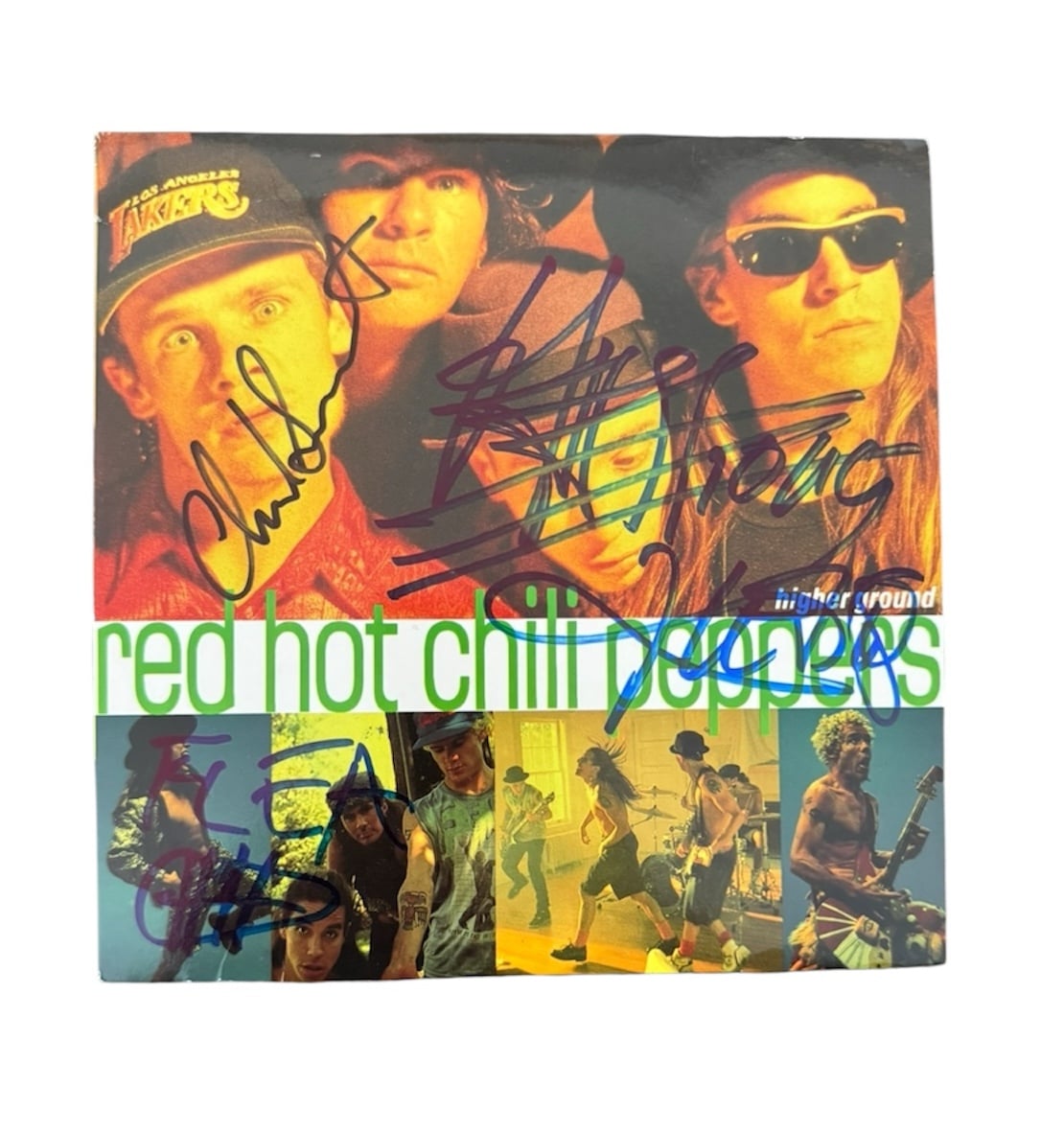 A CD (Higher Ground) inlay signed in blue sharpie pen by 3 members of Red Hot Chili Peppers. Signed in a style that would be expected from the early 2000’s.