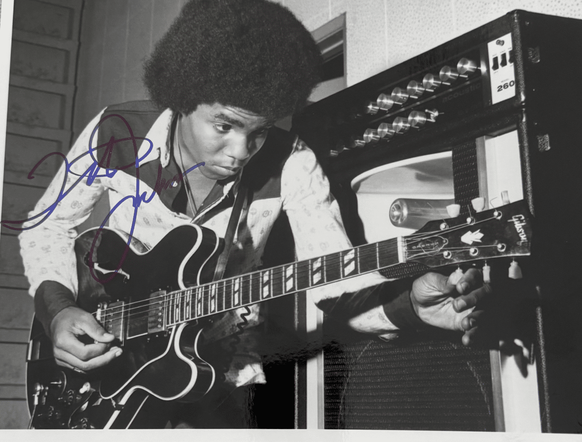 A photograph, autographed by Tito Jackson. Signed at a private signing in the UK. Comes with photographic evidence.