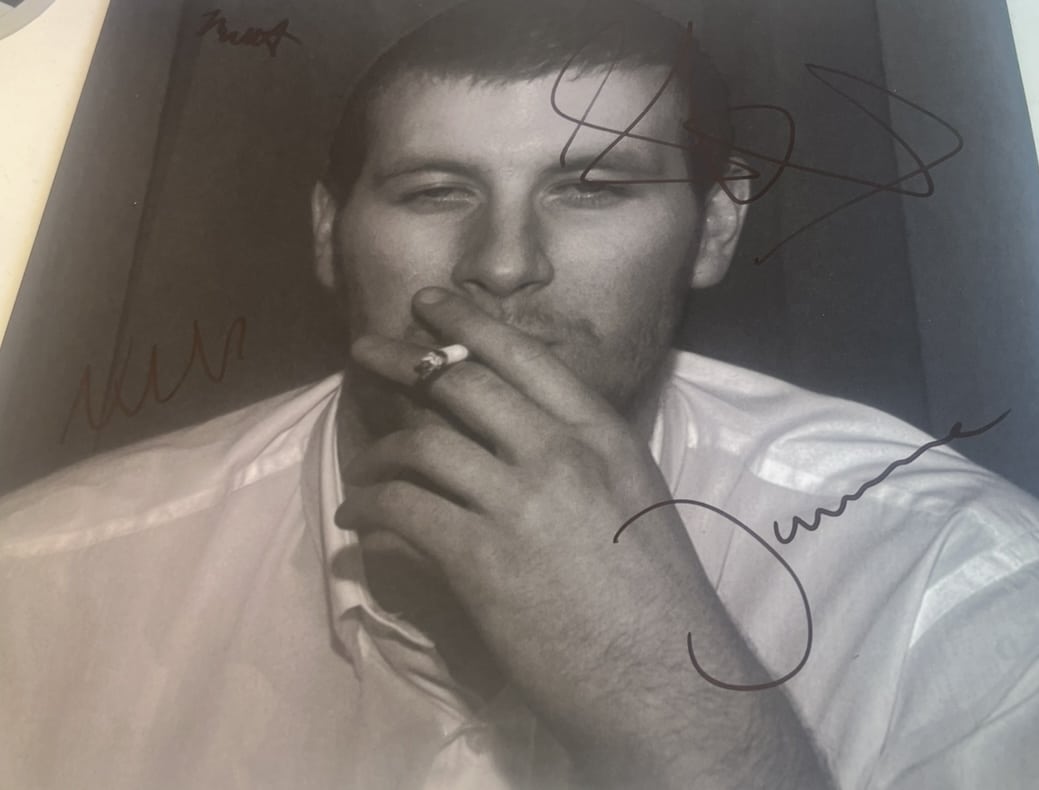 Vinyl LP (Whatever People Say I Am, That’s What I’m Not) autographed by Alex Turner, Jaime Cook, Nick O’Malley and Matt Helders of Arctic Monkeys. Good set of AM autographs. Street signings from the past five years.