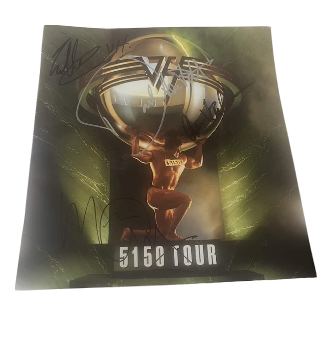 A tour programme (5150) autographed by David Lee Roth, Eddie Van Halen, Alex Van Halen and Michael Anthony of Van Halen. Good solid set of Van Halen autographs.