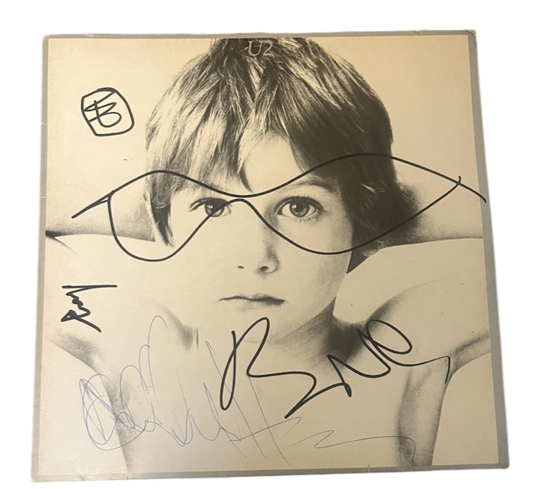 A vinyl LP (Boy) signed by all four members of U2. Good set that are signed in the style expected from early 2000’s.