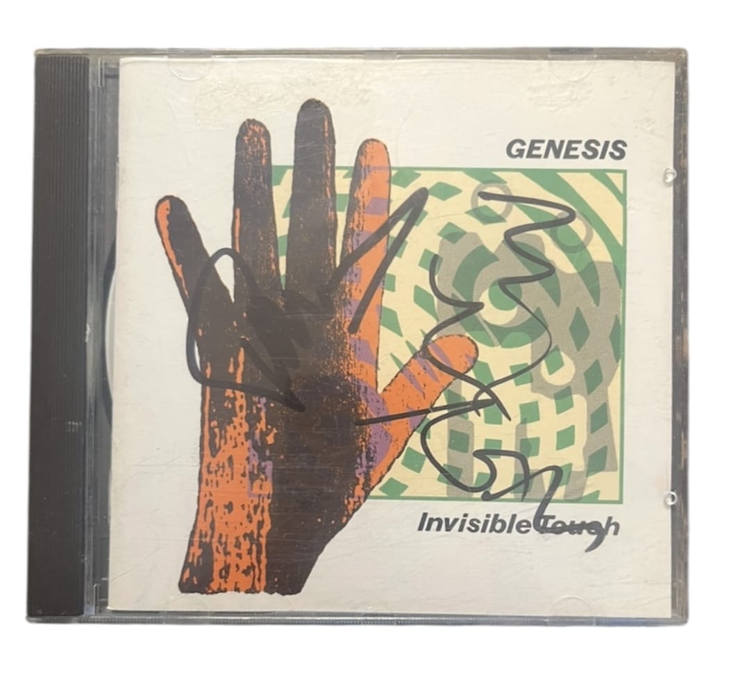 A CD (Invisible Touch) autographed by Phil Collins, Mike Rutherford and Tony Banks of Genesis. Good set of street signings. Slightly rushed and scruffy. All bearing the characteristics to be expected of a genuine set.