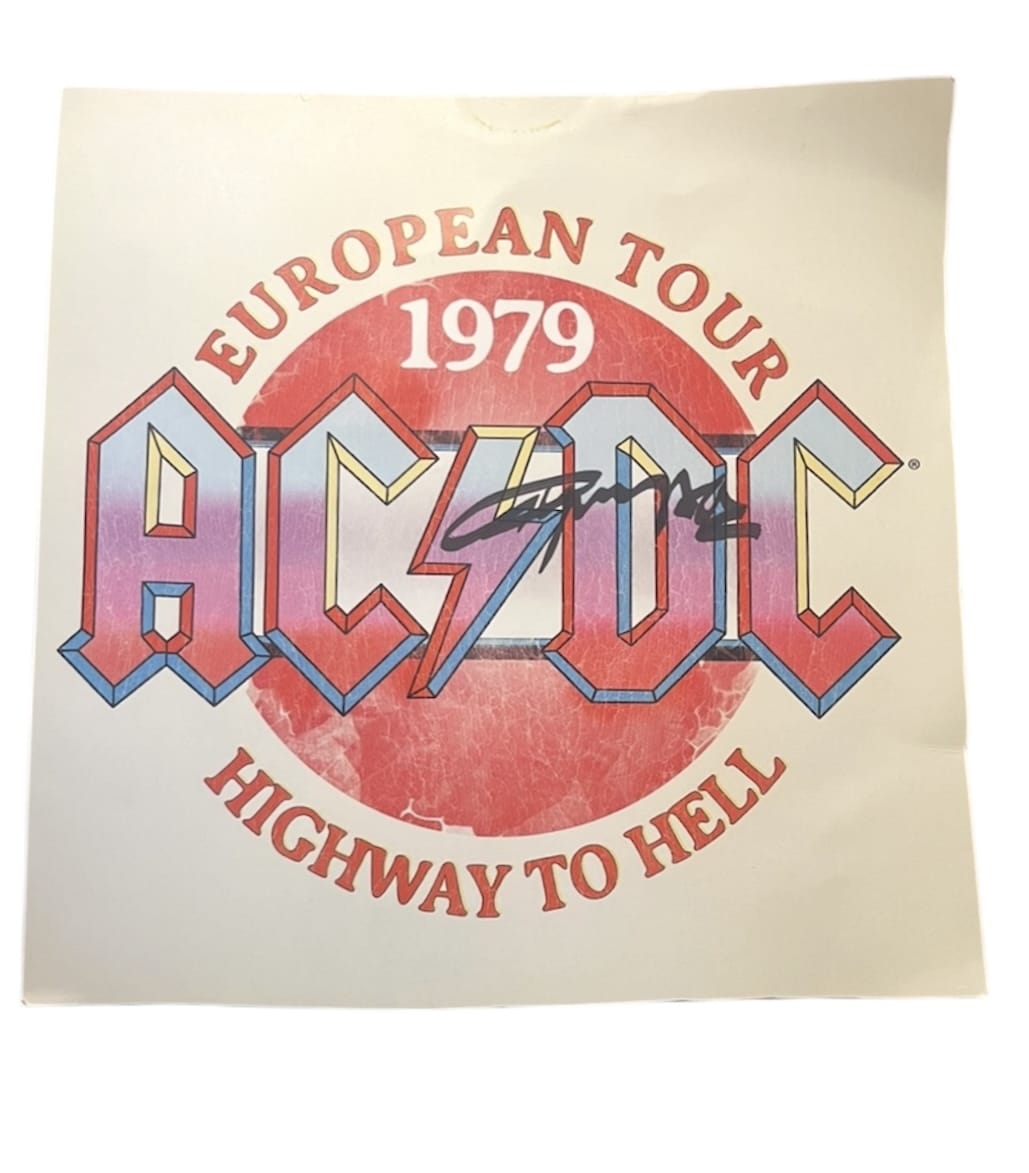 A promotional reprint advertising AC/DC’s 1979 European tour. Item is signed by Angus Young. A good genuine example.