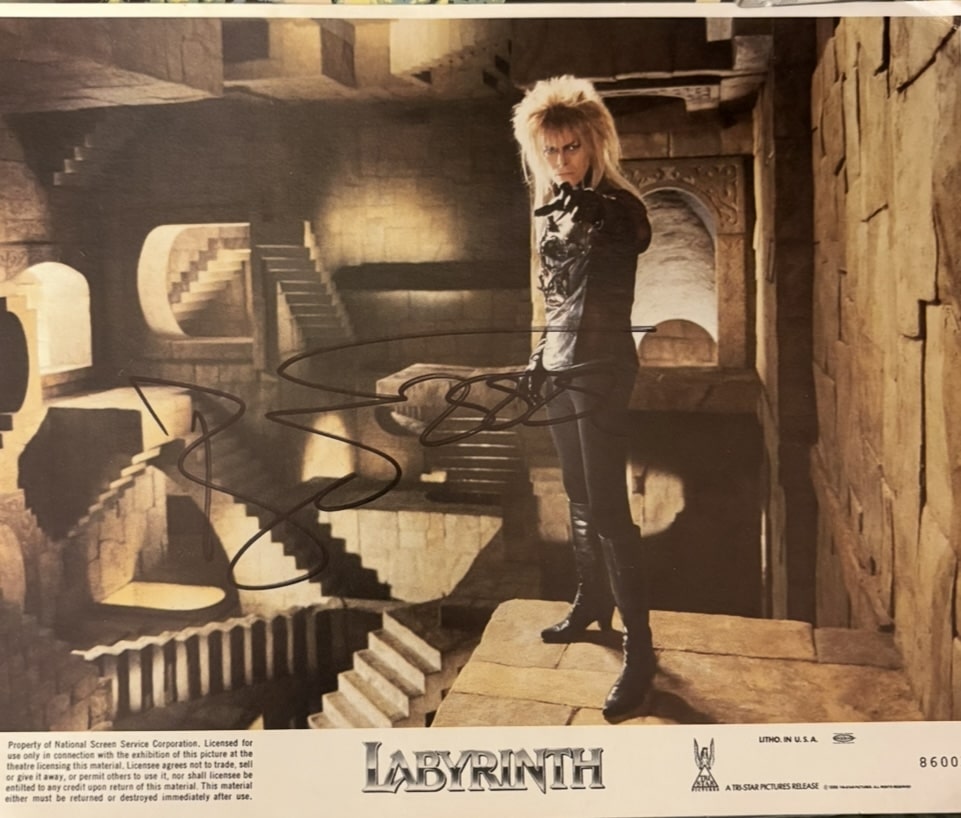 A photograph (Labyrinth), autographed by David Bowie.