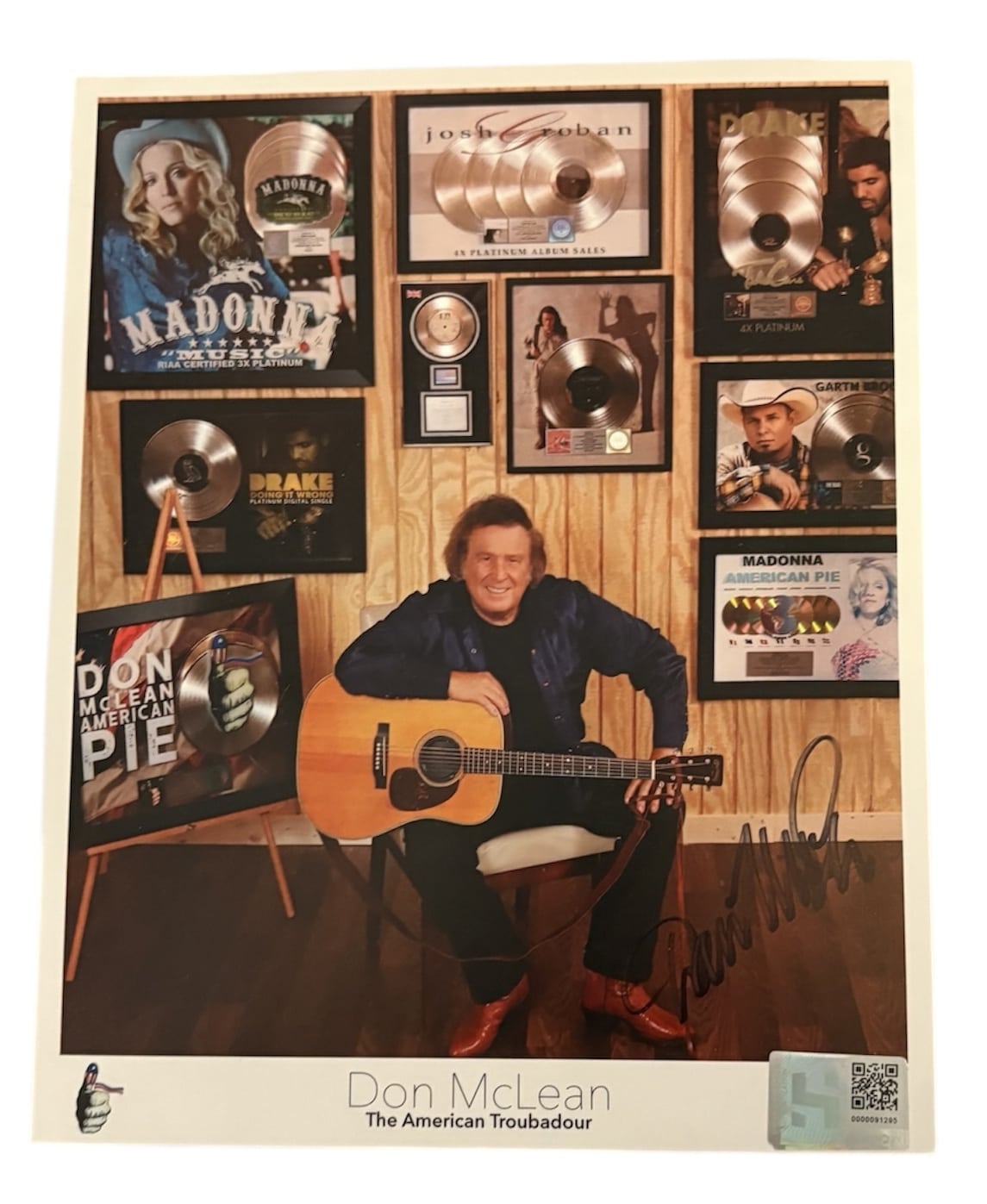 An 8×10″ promotional card, autographed by Don McLean. Card from official website.
