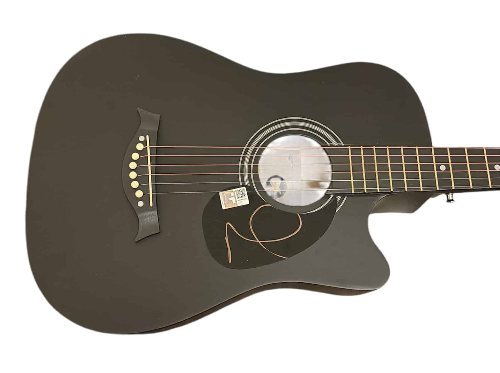 An acoustic guitar, autographed on the scratchplate by Noel Gallagher of Oasis. Typical modern first name signing from Noel. Good genuine example.