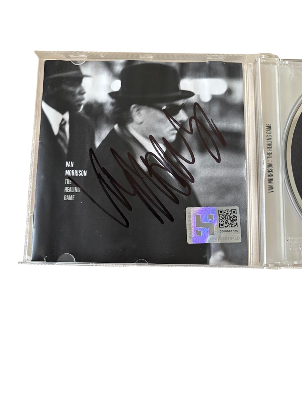 A CD (The Healing Game), autographed on the reverse of the CD inlay in black marker pen by Van Morrison. A smart, fluid signing. Good shape and no signs of hesitation.