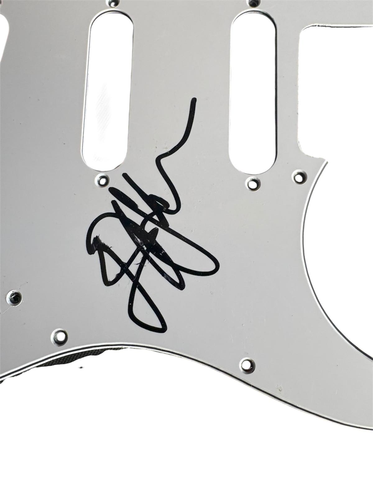 An electric guitar, autographed by Elton John. Typical signing, no hesitation seen with great flow of pen.