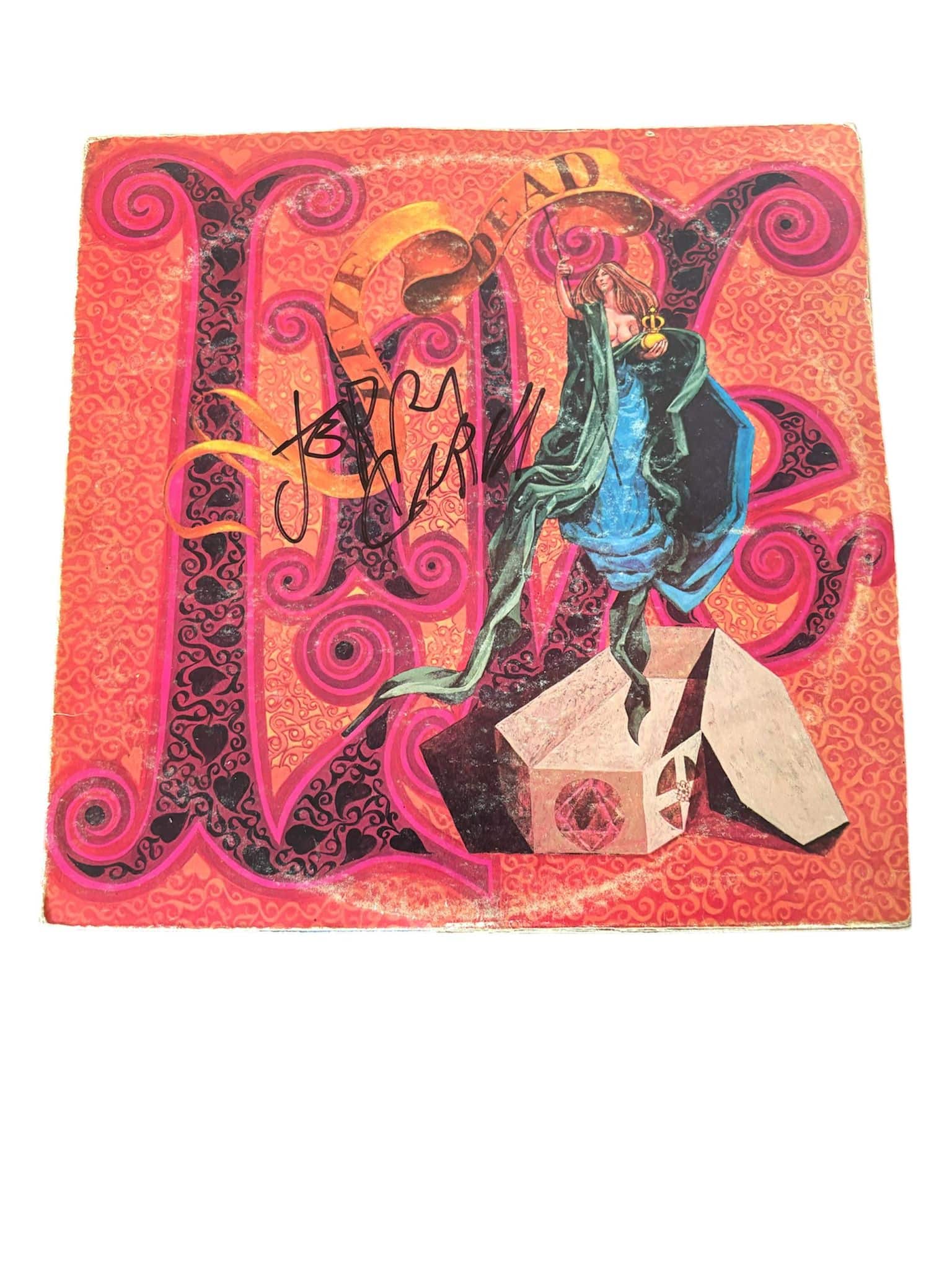 A vinyl LP (Live/Dead) autographed in black marker pen by Jerry Garcia. A fairly typical Garcia signing, “street style” form with good shape.